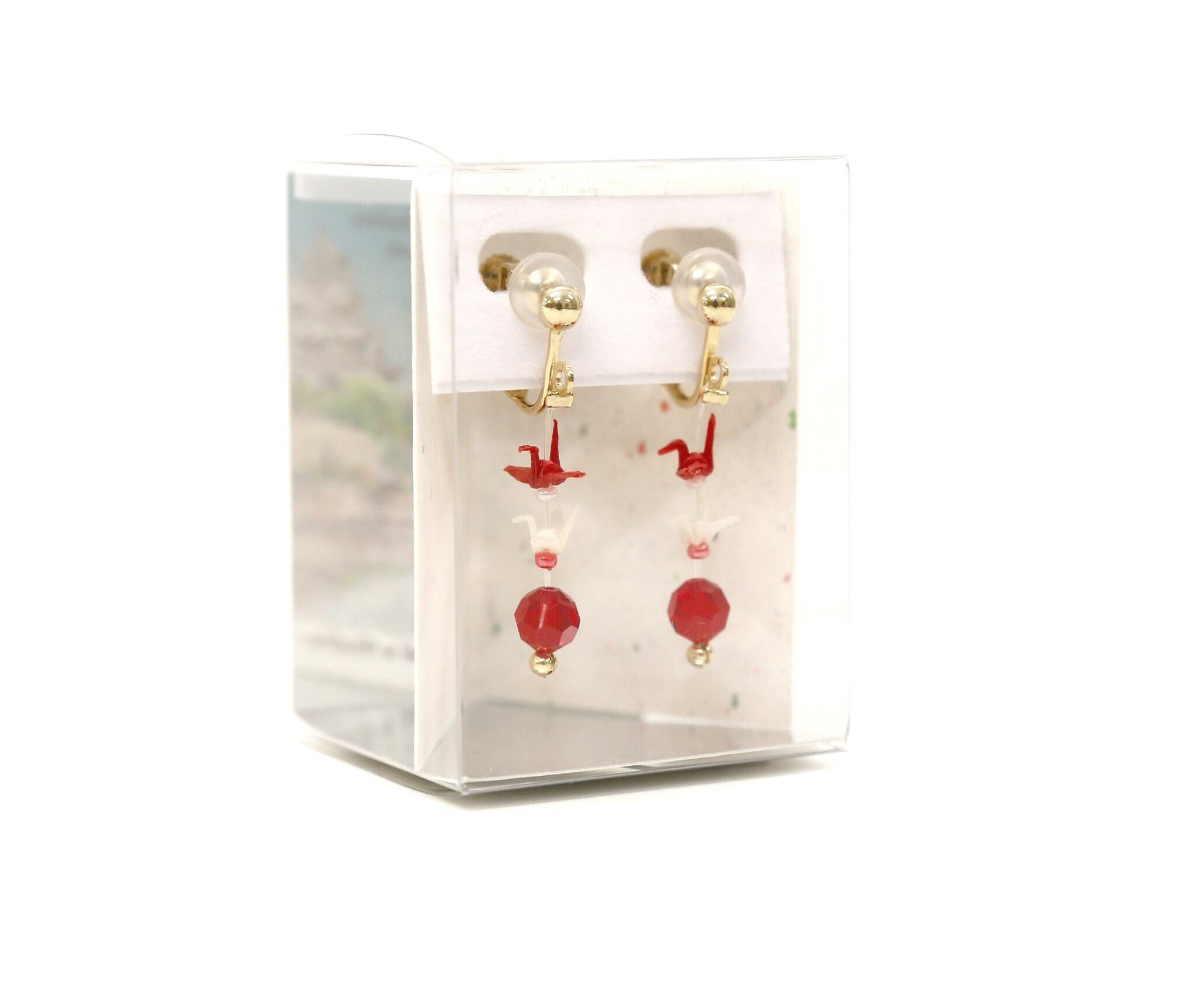 極小1センチの折り紙で作った繊細な和の美しさ、スワロフスキーの輝きにより可愛さあふれる「おりづるイヤリング」です。
